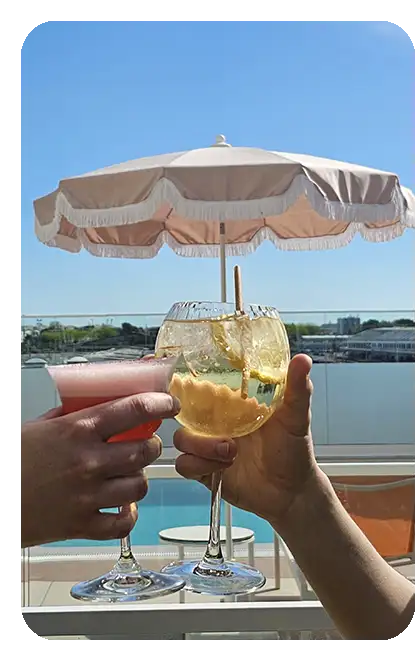 Le concert se déroulera sur la terrasse de l’hôtel, un véritable havre de paix en plein cœur de La Rochelle. Installez-vous confortablement, laissez-vous porter par l’ambiance, admirez la vue sur la piscine et profitez des derniers rayons du soleil.